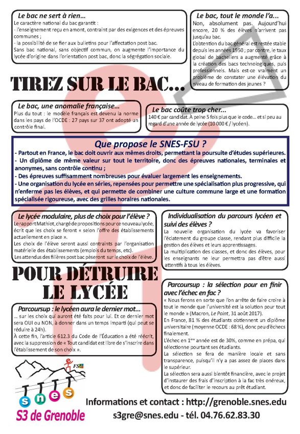 Sur la réforme du baccalauréat et du lycée, le gouvernement a en effet prévu d’aller très vite (passage en conseil des ministres le 14 février), nous ne devons pas le laisser faire.