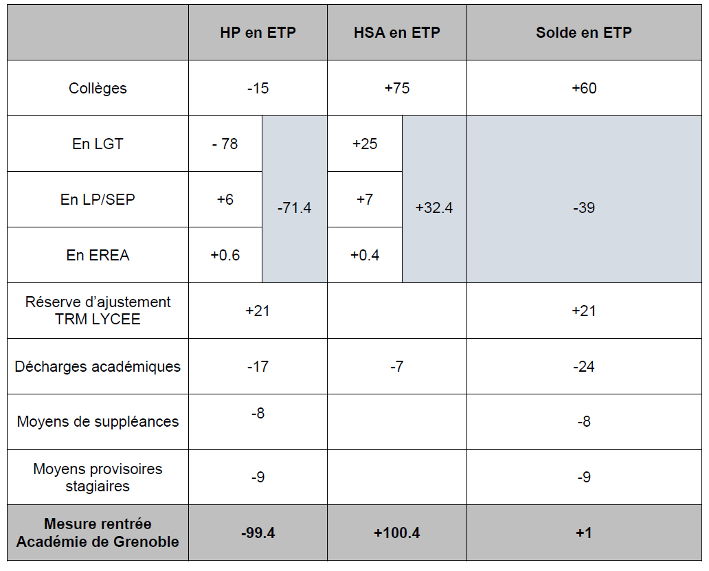 Par ailleurs, alors que les discours se voulaient rassurants, les lycées paient le prix forts. Les estimations faites dès l’annonce de la réforme se concrétisent : 78 postes sont supprimés, soit un par lycée. Le rectorat garde 21 ETP pour calmer la grogne en saupoudrant selon les mobilisations locales. Face à ces suppressions massives, la grève du 24 janvier doit être un temps fort de refus de cette politique qui cherche à monter les collègues les uns contre les autres pour faire passer ces réformes.