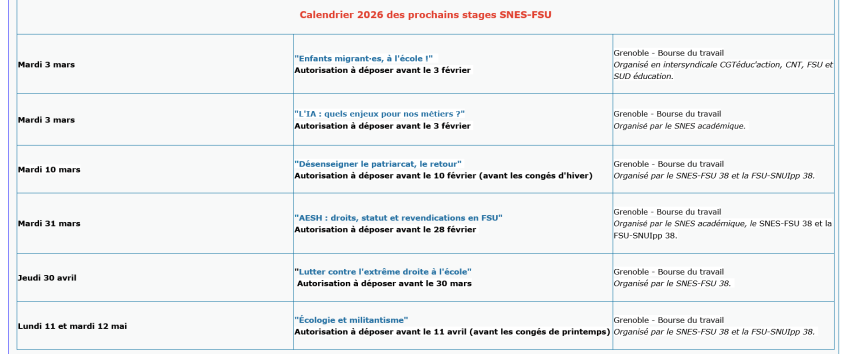 Le stage syndical : un droit pour toutes et tous.