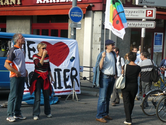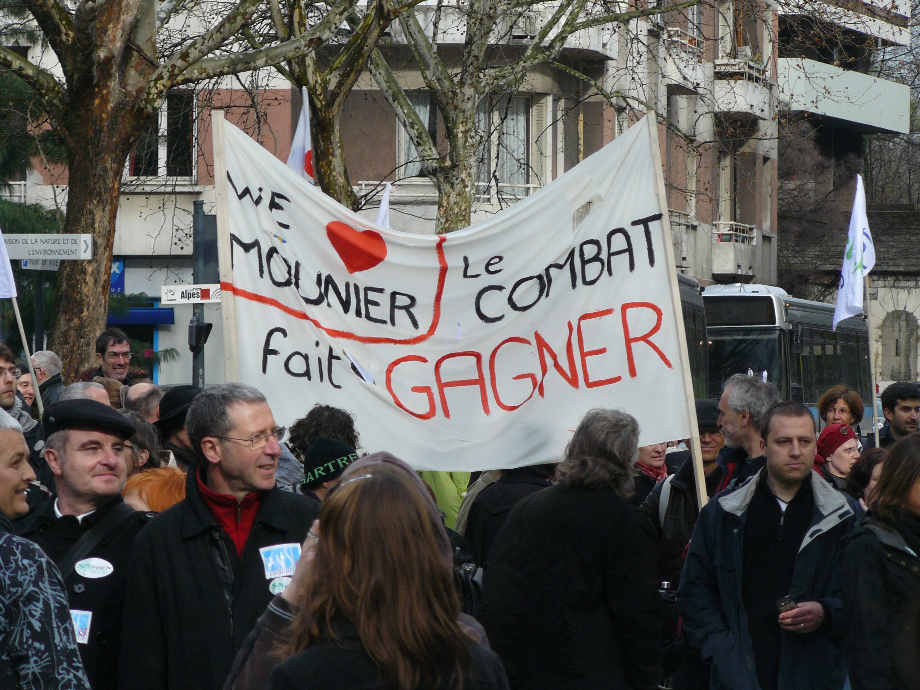 Le jeudi 23 septembre est une journée de grèves et de manifestations interprofessionnelles et unitaires contre le projet de réforme des retraites Sarkozy / Fillon / Woerth ; parmi les nombreuses banderoles d’établissements, celle du lycée Mounier rassemble des personnels qui ignorent encore l’annonce que le Président de la Région Rhône-Alpes fera le soir même sur France3 : la fermeture du lycée Emmanuel Mounier en juin 2011 « pour des raisons de sécurité ».