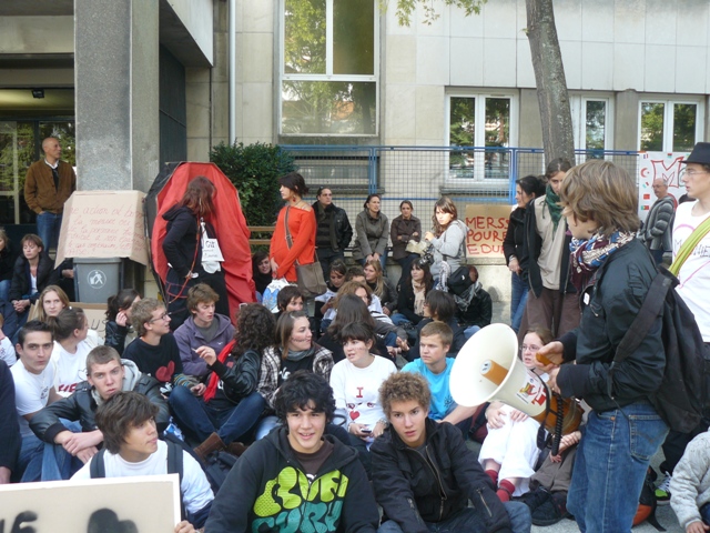 Lundi 27 septembre 2010. Le CA extraordinaire s’ouvre dans une ambiance tendue : à l’extérieur, une foule constituée d’élèves, de personnels de l’établissement, de parents, mais aussi de personnes extérieures à l’établissement attachées à l’existence de ce lycée des quartiers sud, a organisé un rassemblement qui devient un sit-in devant l’entrée principale, à quelques pas seulement de la salle du conseil.