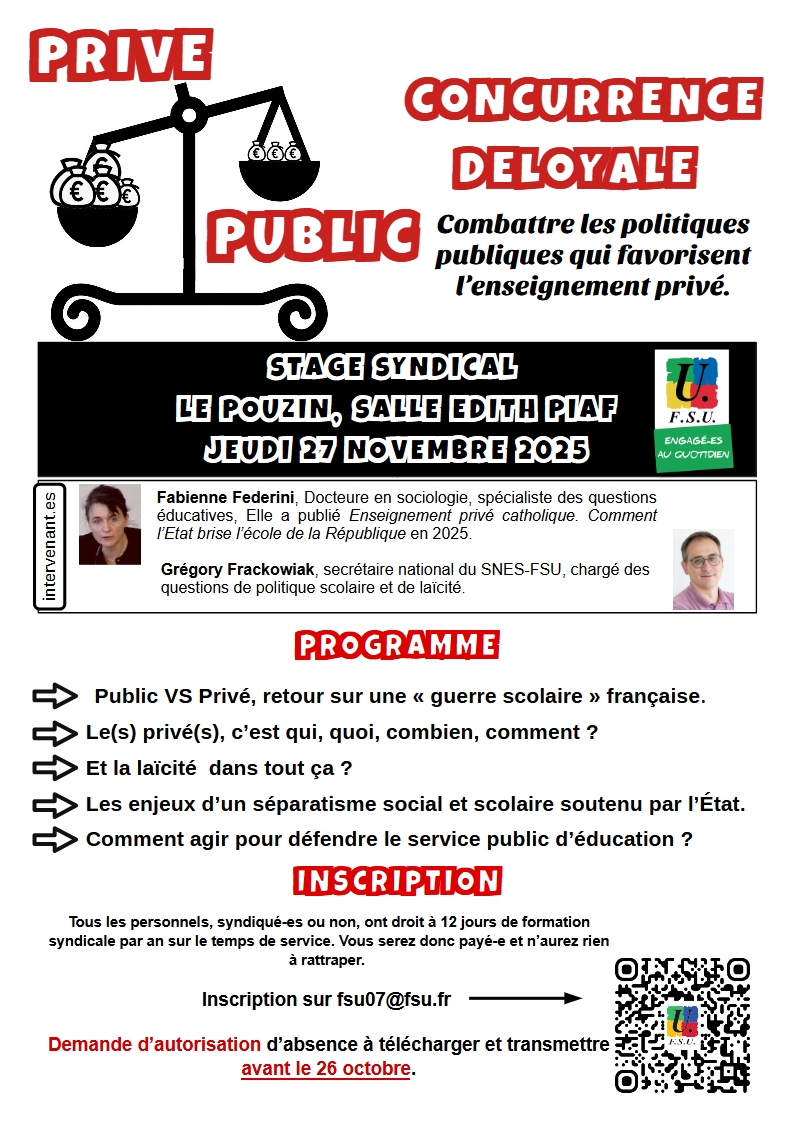 La FSU 07 organise un stage « Public/privé : concurrence déloyale » à la salle Edith Piaf au Pouzin.